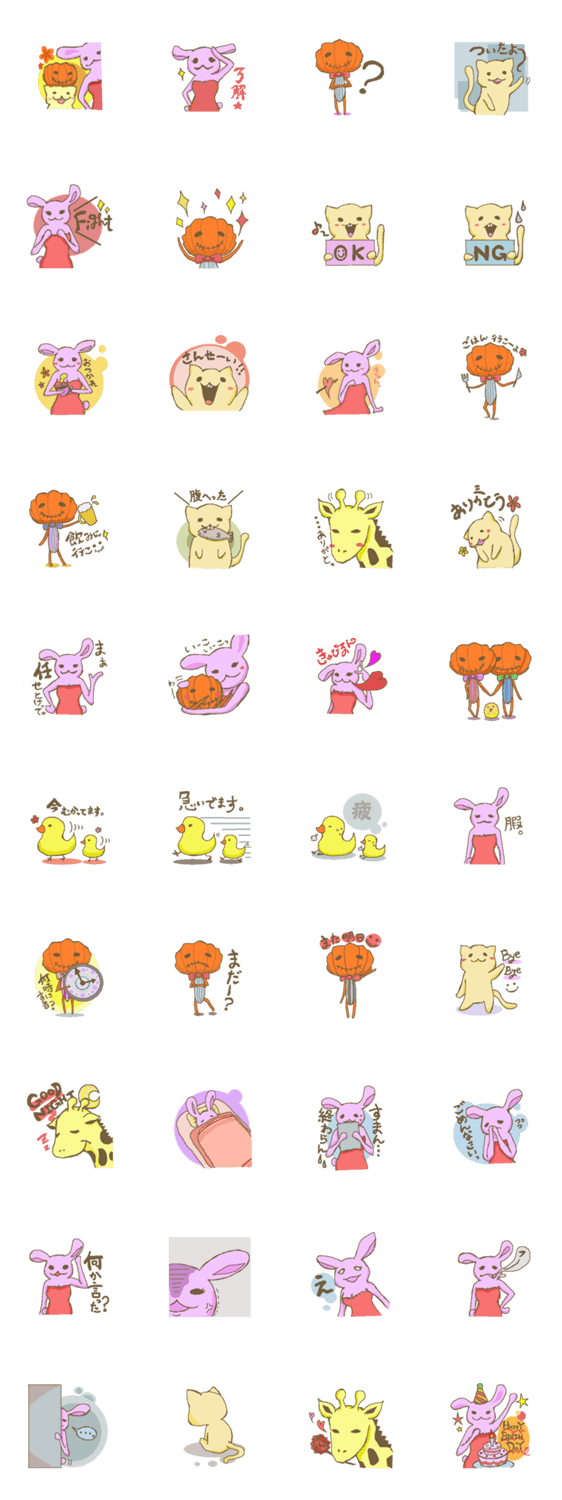 動物たちと少しの野菜 きりん コメントをどうぞ セクシー担当うさぎ姉さんと、元気なかぼちゃ君と、その仲間たち。ゆるりと使ってあげてください。 このスタンプどう思う?!↓クリックで投票♪好き (0)かわいい (0)かっこいい (0)おもしろい (0)使いやすそう (0)欲しい (0)萌え (0)ほっこりする (0)おしゃれ (0)ゆるい (0)こわい (0)ウザい (0)キモい (0)ムカつく (0)持ってる (0)癒される (0)セクシー (0)個性的 (0)私は買わない (0)誰かプレゼントして! (0) 購入・プレゼントする Facebookでシェア Twitterでシェア