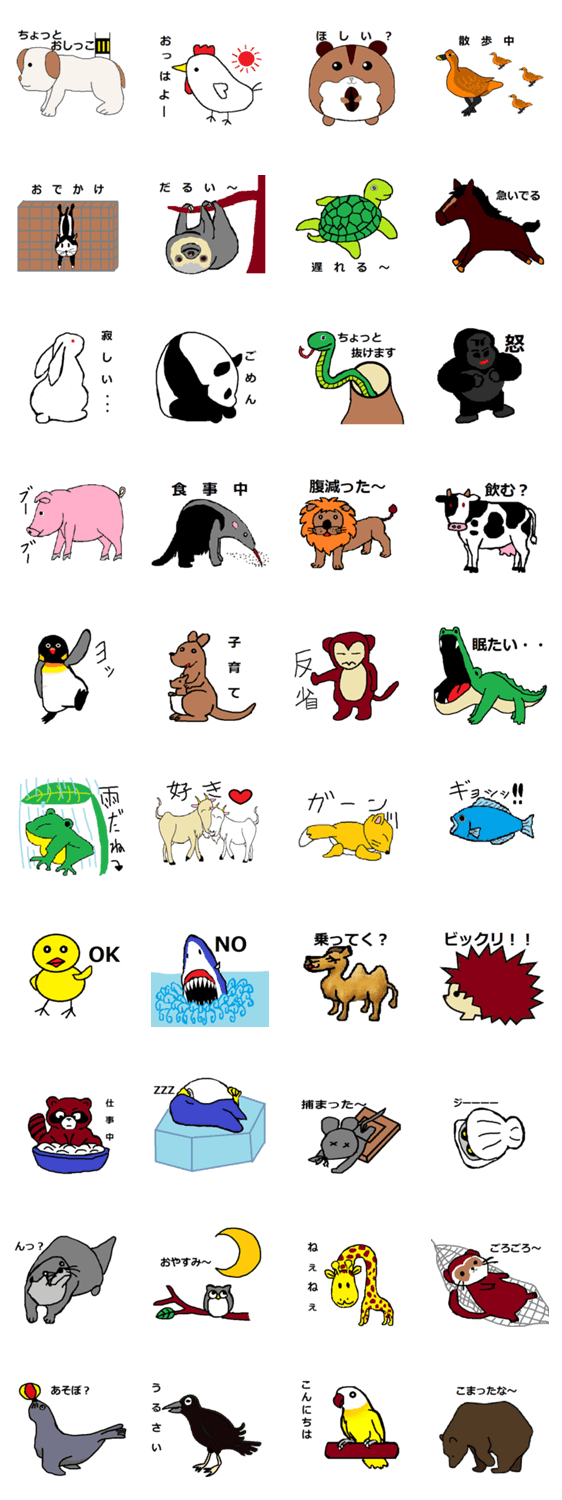 動物たちの日常的 ochan コメントをどうぞ 色々な動物たちの日常的なスタンプです。日常的な会話につかって下さい。絵は親しみやすいゆるい絵になってます。 このスタンプどう思う?!↓クリックで投票♪好き (0)かわいい (0)かっこいい (0)おもしろい (0)使いやすそう (0)欲しい (0)萌え (0)ほっこりする (0)おしゃれ (0)ゆるい (0)こわい (0)ウザい (0)キモい (0)ムカつく (0)持ってる (0)癒される (0)セクシー (0)個性的 (0)私は買わない (0)誰かプレゼントして! (0) 購入・プレゼントする Facebookでシェア Twitterでシェア