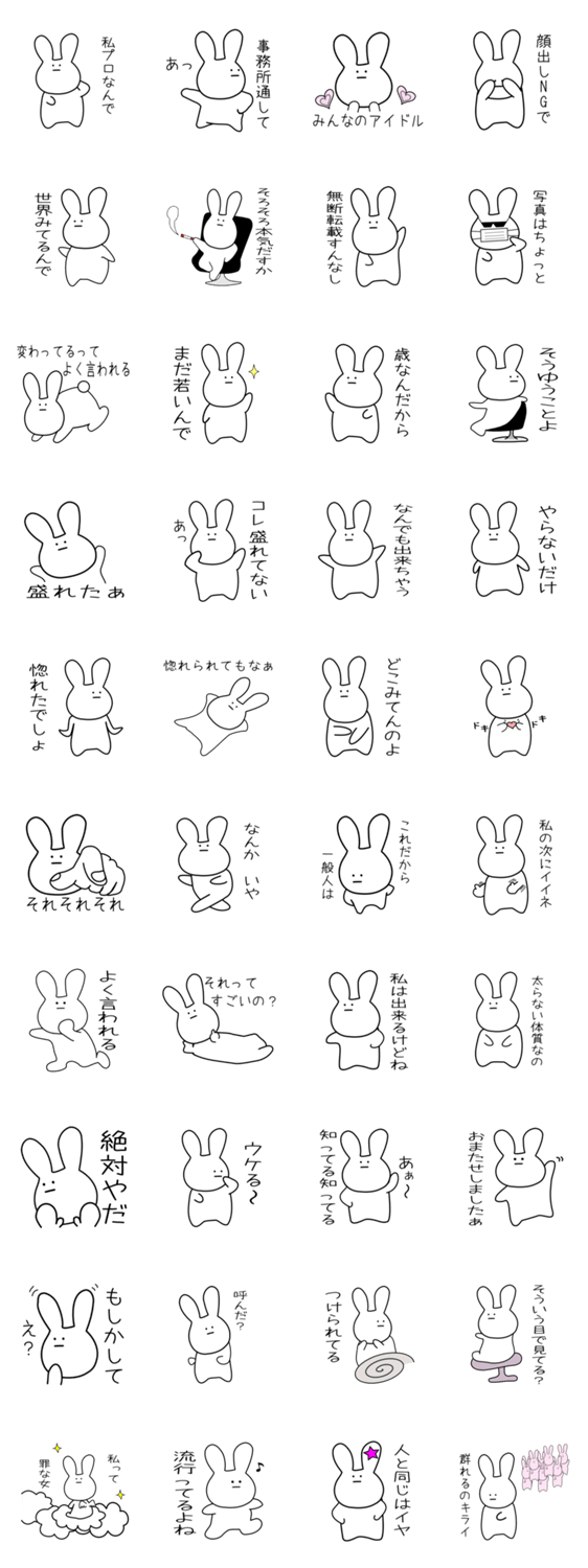 勘違いうさぎ ごもっぷ コメントをどうぞ 自信過剰でいて自意識過剰なうさぎ(女子)。こんな人まわりに一人はいますよね。 このスタンプどう思う?!↓クリックで投票♪好き (0)かわいい (0)かっこいい (0)おもしろい (0)使いやすそう (0)欲しい (0)萌え (0)ほっこりする (0)おしゃれ (0)ゆるい (0)こわい (0)ウザい (0)キモい (0)ムカつく (0)持ってる (0)癒される (0)セクシー (0)個性的 (0)私は買わない (0)誰かプレゼントして! (0) 購入・プレゼントする Facebookでシェア Twitterでシェア