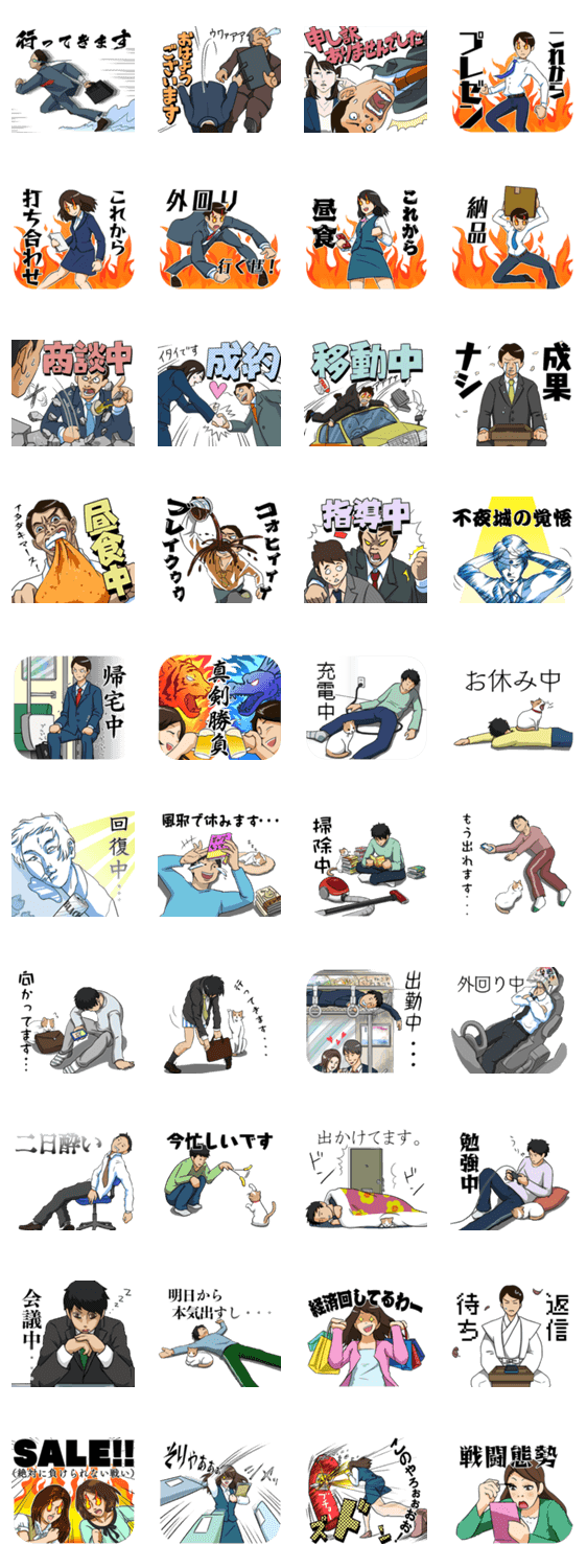 勤労生活のススメ ~社会人の日常~ 株式会社スマイルアクス コメントをどうぞ 本音と建前、勤労と怠惰の狭間に揺れる、日本経済を支える社会人の日常が、おもしろおかしいスタンプになりました。社長も部長も課長も平社員も…みんな幸せになりたい! このスタンプどう思う?!↓クリックで投票♪好き (0)かわいい (0)かっこいい (0)おもしろい (0)使いやすそう (0)欲しい (0)萌え (0)ほっこりする (0)おしゃれ (0)ゆるい (0)こわい (0)ウザい (0)キモい (0)ムカつく (0)持ってる (0)癒される (0)セクシー (0)個性的 (0)私は買わない (0)誰かプレゼントして! (0) 購入・プレゼントする Facebookでシェア Twitterでシェア