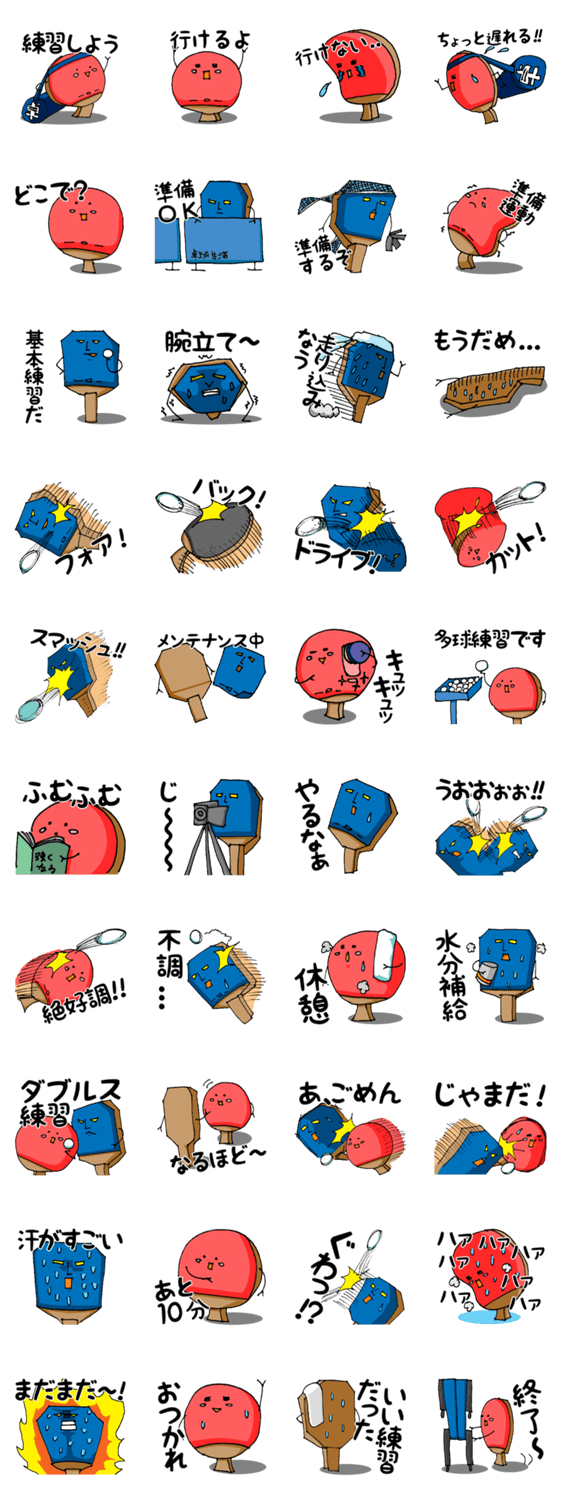 卓球生活 – 練習編 – イーチスタイル コメントをどうぞ 卓球好きにお勧めのスタンプ、卓球生活の練習編です。練習の約束などで使えそうなアイテムを揃えました。チームの部屋などで是非お使いください。 このスタンプどう思う?!↓クリックで投票♪好き (0)かわいい (0)かっこいい (0)おもしろい (0)使いやすそう (0)欲しい (0)萌え (0)ほっこりする (0)おしゃれ (0)ゆるい (0)こわい (0)ウザい (0)キモい (0)ムカつく (0)持ってる (0)癒される (0)セクシー (0)個性的 (0)私は買わない (0)誰かプレゼントして! (0) 購入・プレゼントする Facebookでシェア Twitterでシェア
