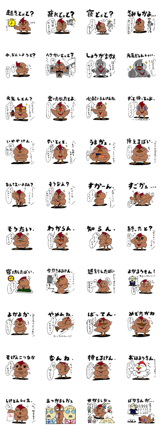 博多チュン太郎とコケ丸 デュデューン コメントをどうぞ 博多弁の小雀のスタンプです。ニワトリが一匹だけ混じっています。 このスタンプどう思う?!↓クリックで投票♪好き (0)かわいい (0)かっこいい (0)おもしろい (0)使いやすそう (0)欲しい (0)萌え (0)ほっこりする (0)おしゃれ (0)ゆるい (0)こわい (0)ウザい (0)キモい (0)ムカつく (0)持ってる (0)癒される (0)セクシー (0)個性的 (0)私は買わない (0)誰かプレゼントして! (0) 購入・プレゼントする Facebookでシェア Twitterでシェア