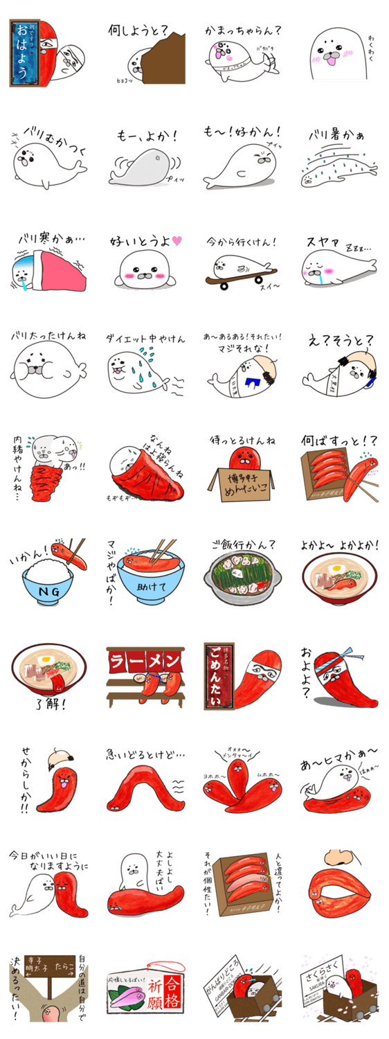 博多弁たいアザラシ!受験用にも! ペイ犬 コメントをどうぞ 博多に住むアザラシのスタンプです!普段は普通のアザラシですがたまに変装します!博多弁好きじゃなくても、合格祈願など友達を励ますのにも使って下さい。! このスタンプどう思う?!↓クリックで投票♪好き (0)かわいい (0)かっこいい (0)おもしろい (0)使いやすそう (0)欲しい (0)萌え (0)ほっこりする (0)おしゃれ (0)ゆるい (0)こわい (0)ウザい (0)キモい (0)ムカつく (0)持ってる (0)癒される (0)セクシー (0)個性的 (0)私は買わない (0)誰かプレゼントして! (0) 購入・プレゼントする Facebookでシェア Twitterでシェア