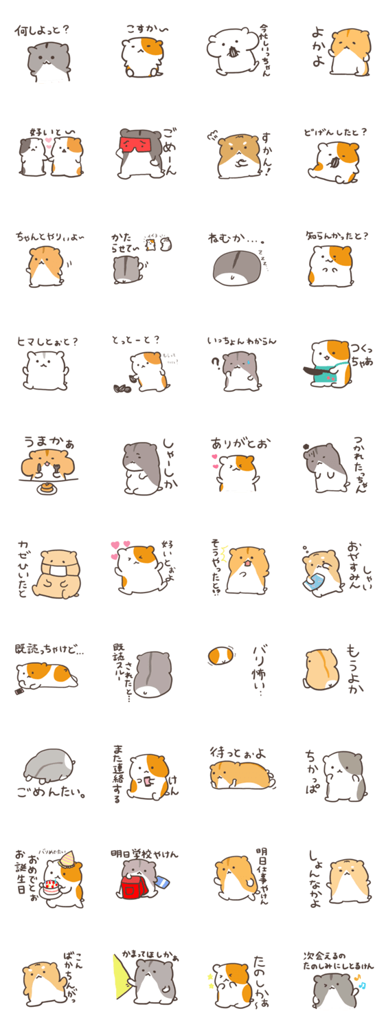 博多弁ハムスター 麦つむぎ コメントをどうぞ 博多っ子な方、博多弁が好きな方、ハムスターが好きな方。博多弁を喋るハムスターを会話にいれてみませんか? このスタンプどう思う?!↓クリックで投票♪好き (0)かわいい (0)かっこいい (0)おもしろい (0)使いやすそう (0)欲しい (0)萌え (0)ほっこりする (0)おしゃれ (0)ゆるい (0)こわい (0)ウザい (0)キモい (0)ムカつく (0)持ってる (0)癒される (0)セクシー (0)個性的 (0)私は買わない (0)誰かプレゼントして! (0) 購入・プレゼントする Facebookでシェア Twitterでシェア