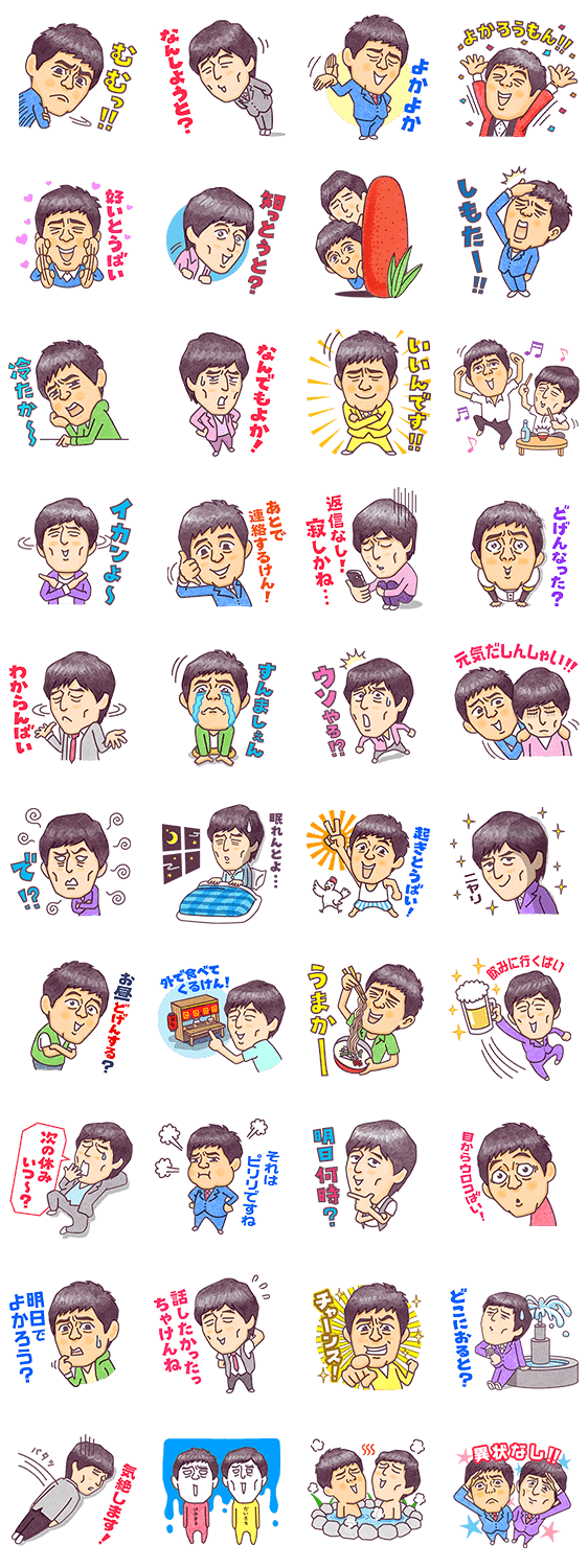 博多華丸・大吉 よしもとクリエイティブ・エージェンシー コメントをどうぞ 博多華丸・大吉のスタンプが登場!なんしようと?知っとうと?などの博多弁を中心に、人気のセリフ~日常で使いやすいフレーズまでラインナップ致しました♪ このスタンプどう思う?!↓クリックで投票♪好き (0)かわいい (0)かっこいい (0)おもしろい (0)使いやすそう (0)欲しい (0)萌え (0)ほっこりする (0)おしゃれ (0)ゆるい (0)こわい (0)ウザい (0)キモい (0)ムカつく (0)持ってる (0)癒される (0)セクシー (0)個性的 (0)私は買わない (0)誰かプレゼントして! (0) 購入・プレゼントする Facebookでシェア Twitterでシェア
