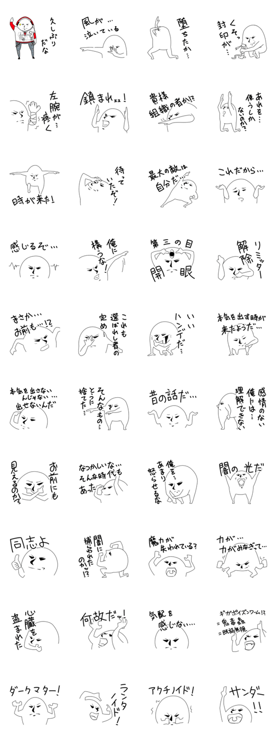 厨二病スタンプ 周 コメントをどうぞ 厨二病の人が言いそうなセリフのスタンプです。もう卒業してしまった人、予備軍の人、もちろん現役で厨二病の人まで!全部使いこなせたら真の厨二病です(笑) このスタンプどう思う?!↓クリックで投票♪好き (0)かわいい (0)かっこいい (0)おもしろい (0)使いやすそう (0)欲しい (0)萌え (0)ほっこりする (0)おしゃれ (0)ゆるい (0)こわい (0)ウザい (0)キモい (0)ムカつく (0)持ってる (0)癒される (0)セクシー (0)個性的 (0)私は買わない (0)誰かプレゼントして! (0) 購入・プレゼントする Facebookでシェア Twitterでシェア