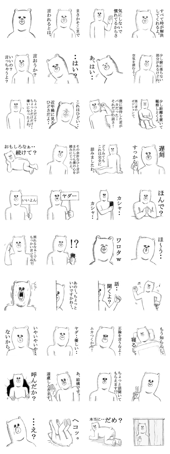 友達いないクマ。 studio HASEGAWA コメントをどうぞ 友達のいないクマです。 このスタンプどう思う?!↓クリックで投票♪好き (0)かわいい (0)かっこいい (0)おもしろい (0)使いやすそう (0)欲しい (0)萌え (0)ほっこりする (0)おしゃれ (0)ゆるい (0)こわい (0)ウザい (0)キモい (0)ムカつく (0)持ってる (0)癒される (0)セクシー (0)個性的 (0)私は買わない (0)誰かプレゼントして! (0) 購入・プレゼントする Facebookでシェア Twitterでシェア