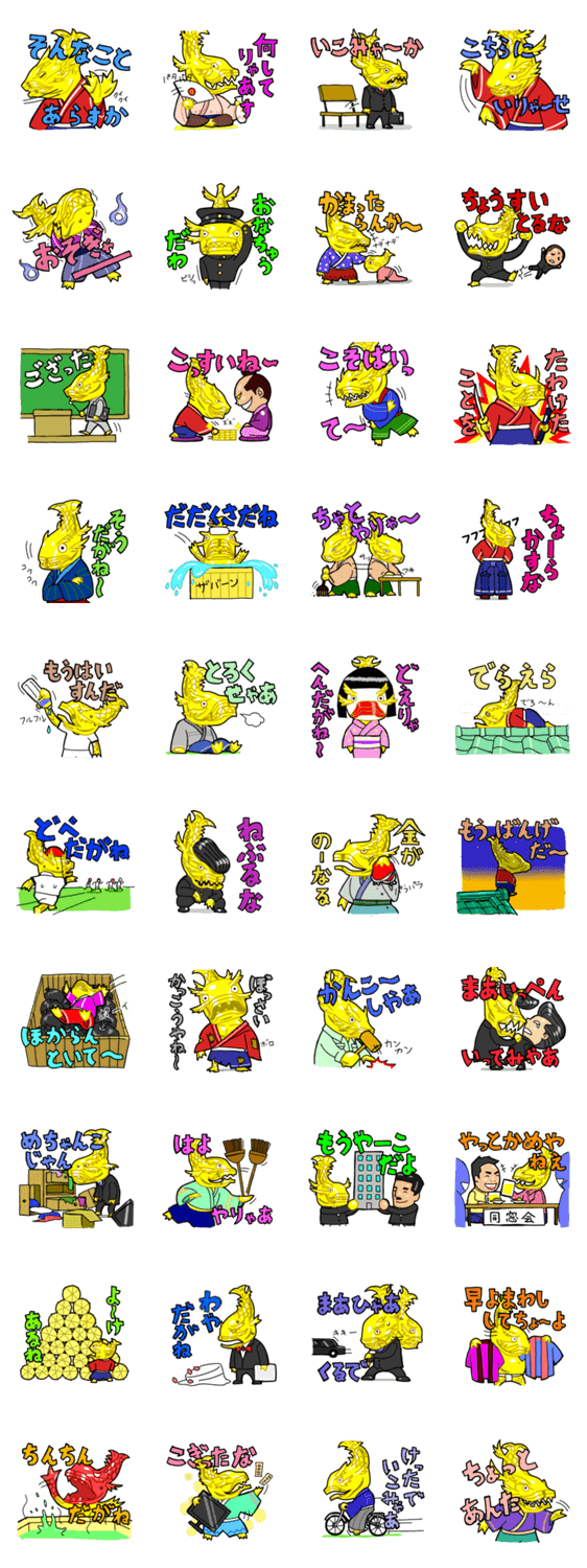 名古屋には金シャチがあるがね! 恒川 憲一 コメントをどうぞ 尾張名古屋の誇り、金のしゃちほこが大活躍!一見遠慮しない名古屋弁独特の言い回し、実は「正直人間」であることの証なのです。自由奔放な金鯱野郎に乞うご期待、だがね! このスタンプどう思う?!↓クリックで投票♪好き (0)かわいい (0)かっこいい (0)おもしろい (0)使いやすそう (0)欲しい (0)萌え (0)ほっこりする (0)おしゃれ (0)ゆるい (0)こわい (0)ウザい (0)キモい (0)ムカつく (0)持ってる (0)癒される (0)セクシー (0)個性的 (0)私は買わない (0)誰かプレゼントして! (0) 購入・プレゼントする Facebookでシェア Twitterでシェア