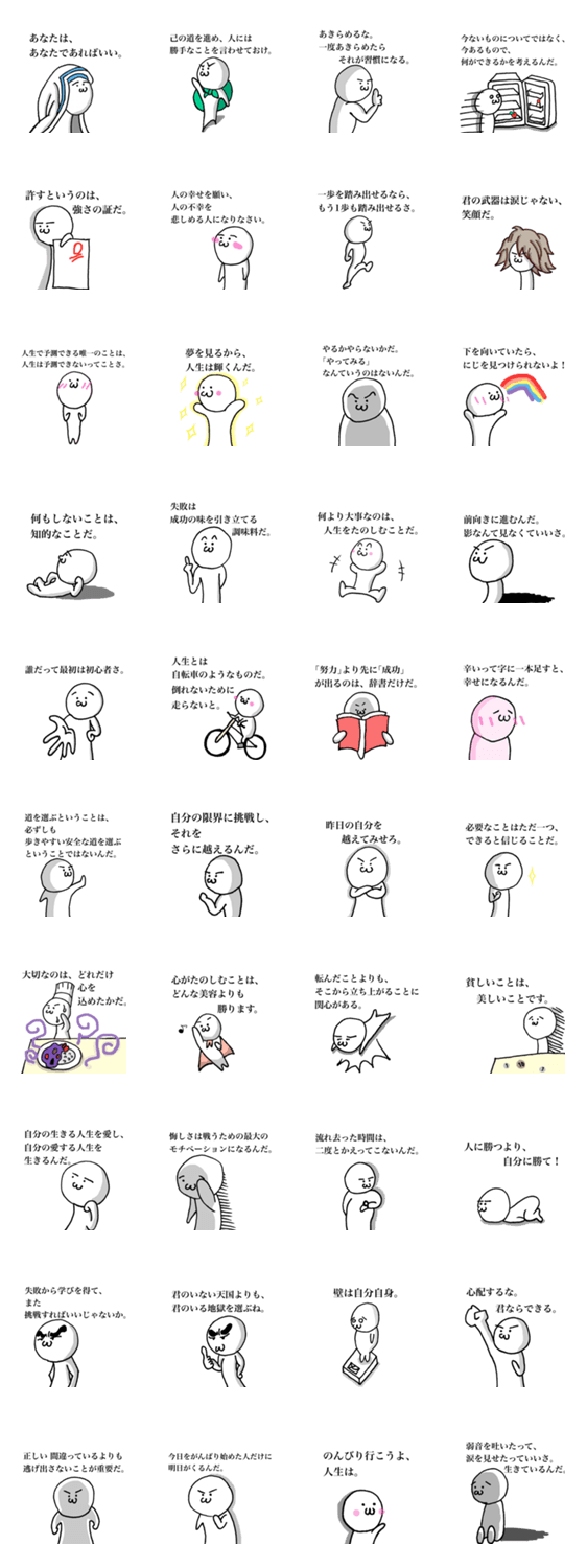 名言な顔文字くん chiaking コメントをどうぞ この顔文字くんが放つ名言のスタンプで友達を励ましたり、背中をおしてあげてやってください。そして絆を深めてみてはどうでしょう♪ このスタンプどう思う?!↓クリックで投票♪好き (0)かわいい (0)かっこいい (0)おもしろい (0)使いやすそう (0)欲しい (0)萌え (0)ほっこりする (0)おしゃれ (0)ゆるい (0)こわい (0)ウザい (0)キモい (0)ムカつく (0)持ってる (0)癒される (0)セクシー (0)個性的 (0)私は買わない (0)誰かプレゼントして! (0) 購入・プレゼントする Facebookでシェア Twitterでシェア