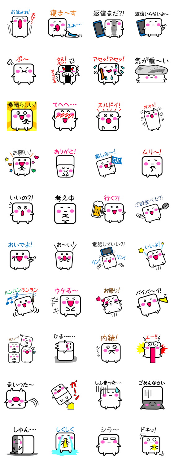 四角いので、キレイに収まります。 いつき コメントをどうぞ カラダは四角いけれど、心はまんまる。かわいい!ゆるい!四角くんが、「四角四面」の世の中を、軽いトークで丸くおさめます。 このスタンプどう思う?!↓クリックで投票♪好き (0)かわいい (0)かっこいい (0)おもしろい (0)使いやすそう (0)欲しい (0)萌え (0)ほっこりする (0)おしゃれ (0)ゆるい (0)こわい (0)ウザい (0)キモい (0)ムカつく (0)持ってる (0)癒される (0)セクシー (0)個性的 (0)私は買わない (0)誰かプレゼントして! (0) 購入・プレゼントする Facebookでシェア Twitterでシェア