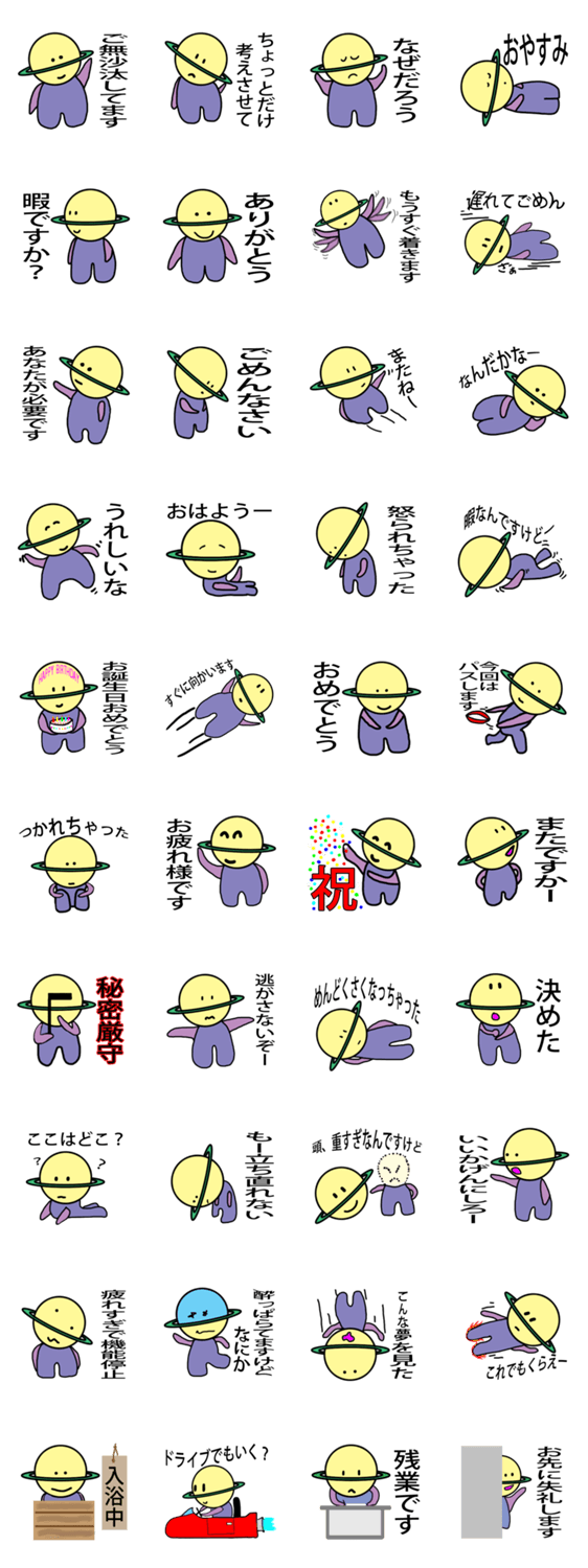 土星人のセイト MZ Zone コメントをどうぞ 土星人のセイトの日常生活が舞台です。結構使えると思います。 このスタンプどう思う?!↓クリックで投票♪好き (0)かわいい (0)かっこいい (0)おもしろい (0)使いやすそう (0)欲しい (0)萌え (0)ほっこりする (0)おしゃれ (0)ゆるい (0)こわい (0)ウザい (0)キモい (0)ムカつく (0)持ってる (0)癒される (0)セクシー (0)個性的 (0)私は買わない (0)誰かプレゼントして! (0) 購入・プレゼントする Facebookでシェア Twitterでシェア