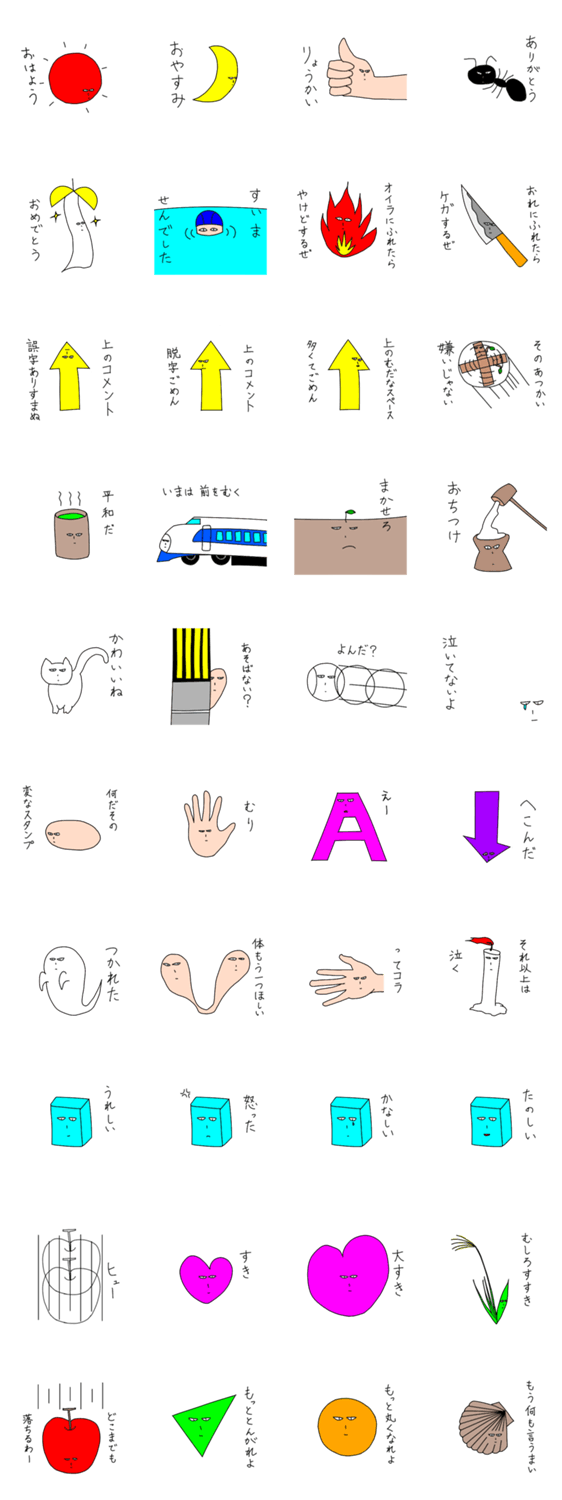型にはまらない男 アワケマン コメントをどうぞ 気付いたら何かになってる男のスタンプです。顔だけのものは空間になってると思ってください。りんごのスタンプは永久に落ちていけますよ(^^)よろしくお願いします。 このスタンプどう思う?!↓クリックで投票♪好き (0)かわいい (0)かっこいい (0)おもしろい (0)使いやすそう (0)欲しい (0)萌え (0)ほっこりする (0)おしゃれ (0)ゆるい (0)こわい (0)ウザい (0)キモい (0)ムカつく (0)持ってる (0)癒される (0)セクシー (0)個性的 (0)私は買わない (0)誰かプレゼントして! (0) 購入・プレゼントする Facebookでシェア Twitterでシェア