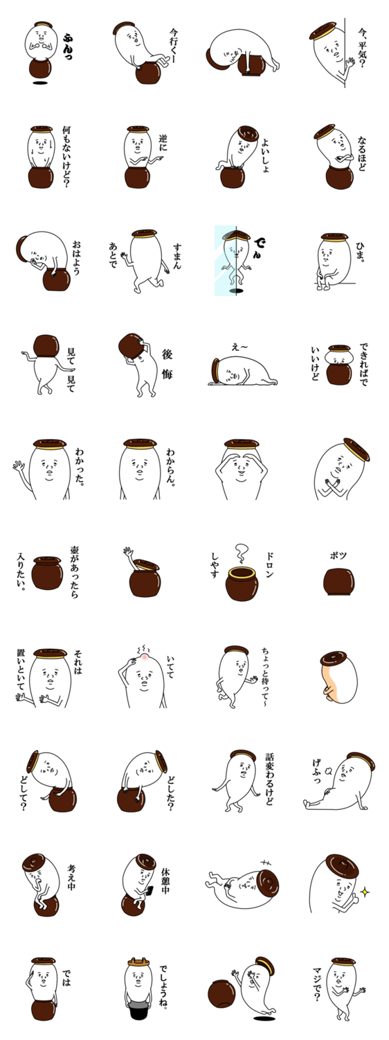 壺一郎(つぼいちろう) こだ麻呂 コメントをどうぞ 糠漬け用壺が気に入って住み着いている謎の生命体。気ままでちょっとおっちょこちょいな性格です。 このスタンプどう思う?!↓クリックで投票♪好き (0)かわいい (0)かっこいい (0)おもしろい (0)使いやすそう (0)欲しい (0)萌え (0)ほっこりする (0)おしゃれ (0)ゆるい (0)こわい (0)ウザい (0)キモい (0)ムカつく (0)持ってる (0)癒される (0)セクシー (0)個性的 (0)私は買わない (0)誰かプレゼントして! (0) 購入・プレゼントする Facebookでシェア Twitterでシェア