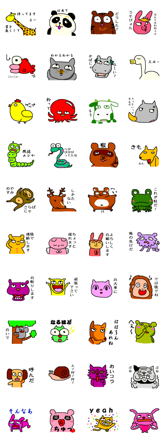 変な動物スタンプ2 わかにゃ コメントをどうぞ 変で小生意気な動物達のスタンプだよ。キリン、パンダ、魚、へび、たぬき、きつね、ももんが、カエル、こあら、などなどぶさ可愛いキャラクターがもりだくさん! このスタンプどう思う?!↓クリックで投票♪好き (0)かわいい (0)かっこいい (0)おもしろい (0)使いやすそう (0)欲しい (0)萌え (0)ほっこりする (0)おしゃれ (0)ゆるい (0)こわい (0)ウザい (0)キモい (0)ムカつく (0)持ってる (0)癒される (0)セクシー (0)個性的 (0)私は買わない (0)誰かプレゼントして! (0) 購入・プレゼントする Facebookでシェア Twitterでシェア