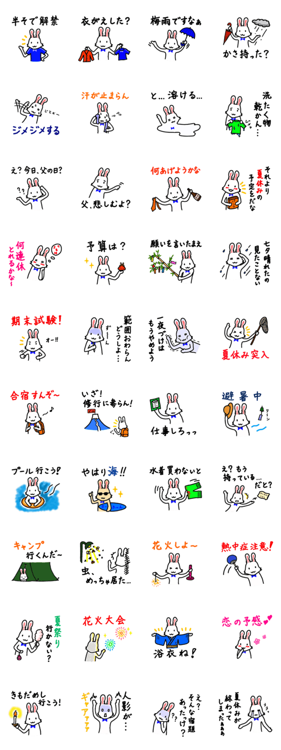 夏が待ち遠しいうさぎ (6〜8月編 Traney) Noemi et Marie コメントをどうぞ 6月から8月に使える、うさぎのトレイニーのスタンプです。梅雨から夏の予定決めなどにどうぞ! このスタンプどう思う?!↓クリックで投票♪好き (0)かわいい (0)かっこいい (0)おもしろい (0)使いやすそう (0)欲しい (0)萌え (0)ほっこりする (0)おしゃれ (0)ゆるい (0)こわい (0)ウザい (0)キモい (0)ムカつく (0)持ってる (0)癒される (0)セクシー (0)個性的 (0)私は買わない (0)誰かプレゼントして! (0) 購入・プレゼントする Facebookでシェア Twitterでシェア