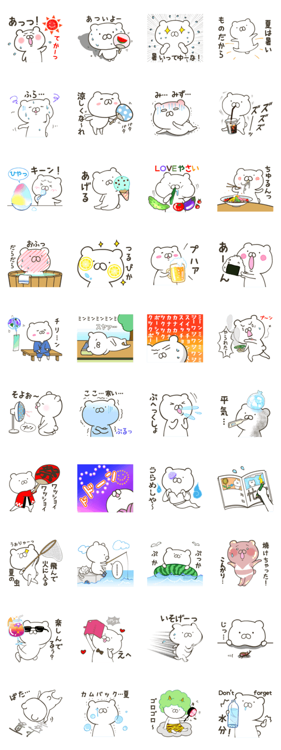 夏くまさん luluppa コメントをどうぞ 夏の白いクマさんです。「暑い」「夏」「涼」スタンプ満載です♪ 色々そろっています。 このスタンプどう思う?!↓クリックで投票♪好き (0)かわいい (0)かっこいい (0)おもしろい (0)使いやすそう (0)欲しい (0)萌え (0)ほっこりする (0)おしゃれ (0)ゆるい (0)こわい (0)ウザい (0)キモい (0)ムカつく (0)持ってる (0)癒される (0)セクシー (0)個性的 (0)私は買わない (0)誰かプレゼントして! (0) 購入・プレゼントする Facebookでシェア Twitterでシェア