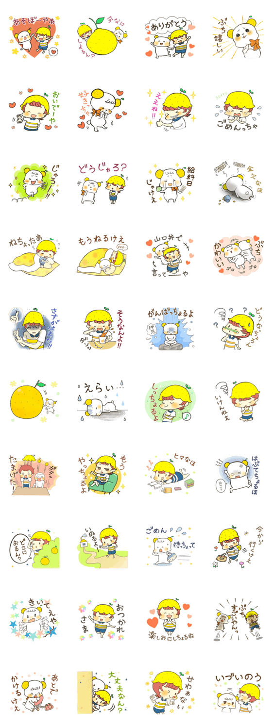 夏みかんボーイズっちゃ! mochita コメントをどうぞ 夏みかんが大好きな少年とクマのかわいいスタンプです!ふたりはとっても仲良し。日常的に使える山口弁がいっぱい。楽しく話そう! このスタンプどう思う?!↓クリックで投票♪好き (0)かわいい (0)かっこいい (0)おもしろい (0)使いやすそう (0)欲しい (0)萌え (0)ほっこりする (0)おしゃれ (0)ゆるい (0)こわい (0)ウザい (0)キモい (0)ムカつく (0)持ってる (0)癒される (0)セクシー (0)個性的 (0)私は買わない (0)誰かプレゼントして! (0) 購入・プレゼントする Facebookでシェア Twitterでシェア