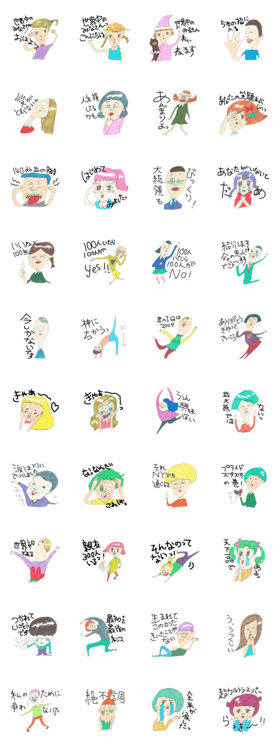 大げさな人々 omori コメントをどうぞ 少し大げさな人たちの愉快なスタンプです。 このスタンプどう思う?!↓クリックで投票♪好き (0)かわいい (0)かっこいい (0)おもしろい (0)使いやすそう (0)欲しい (0)萌え (0)ほっこりする (0)おしゃれ (0)ゆるい (0)こわい (0)ウザい (0)キモい (0)ムカつく (0)持ってる (0)癒される (0)セクシー (0)個性的 (0)私は買わない (0)誰かプレゼントして! (0) 購入・プレゼントする Facebookでシェア Twitterでシェア