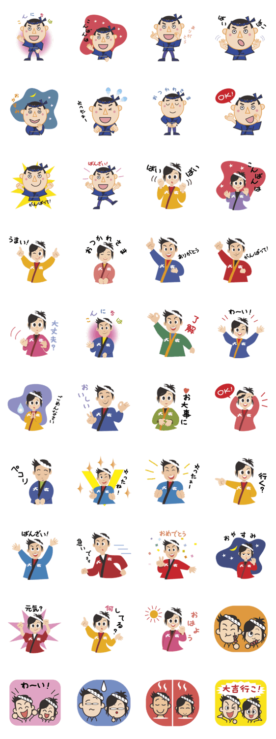 大吉くん DAIKICHI SYSTEM CO.,LTD コメントをどうぞ 「やきとり大吉」のキャラクター「大吉くん」と「つくねちゃん」がLINEに登場。スタンプを送って、友達に大吉をおすそ分け!? このスタンプどう思う?!↓クリックで投票♪好き (0)かわいい (0)かっこいい (0)おもしろい (0)使いやすそう (0)欲しい (0)萌え (0)ほっこりする (0)おしゃれ (0)ゆるい (0)こわい (0)ウザい (0)キモい (0)ムカつく (0)持ってる (0)癒される (0)セクシー (0)個性的 (0)私は買わない (0)誰かプレゼントして! (0) 購入・プレゼントする Facebookでシェア Twitterでシェア