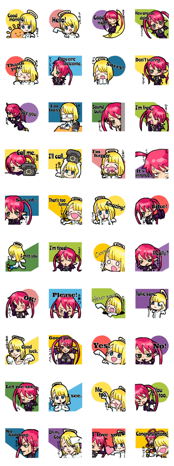 天使くんと悪魔ちゃんの英語スタンプ。 shiratama コメントをどうぞ 天真爛漫な天使くんとツンデレな悪魔ちゃんのスタンプ。わかりやすい英語のスタンプなので、いろんな国で使えます。日本語も書いてあるので、けっこう使いやすいです。 このスタンプどう思う?!↓クリックで投票♪好き (0)かわいい (0)かっこいい (0)おもしろい (0)使いやすそう (0)欲しい (0)萌え (0)ほっこりする (0)おしゃれ (0)ゆるい (0)こわい (0)ウザい (0)キモい (0)ムカつく (0)持ってる (0)癒される (0)セクシー (0)個性的 (0)私は買わない (0)誰かプレゼントして! (0) 購入・プレゼントする Facebookでシェア Twitterでシェア