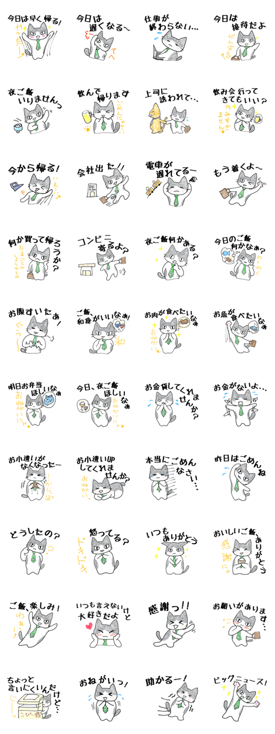 夫婦でやりとり!男性向け みけこ コメントをどうぞ 妻宛てに使える便利なスタンプ盛りだくさん!目指せ!夫婦円満!愛嬌のあるサラリーマン猫で円満にコミュニケーション。 このスタンプどう思う?!↓クリックで投票♪好き (0)かわいい (0)かっこいい (0)おもしろい (0)使いやすそう (0)欲しい (0)萌え (0)ほっこりする (0)おしゃれ (0)ゆるい (0)こわい (0)ウザい (0)キモい (0)ムカつく (0)持ってる (0)癒される (0)セクシー (0)個性的 (0)私は買わない (0)誰かプレゼントして! (0) 購入・プレゼントする Facebookでシェア Twitterでシェア