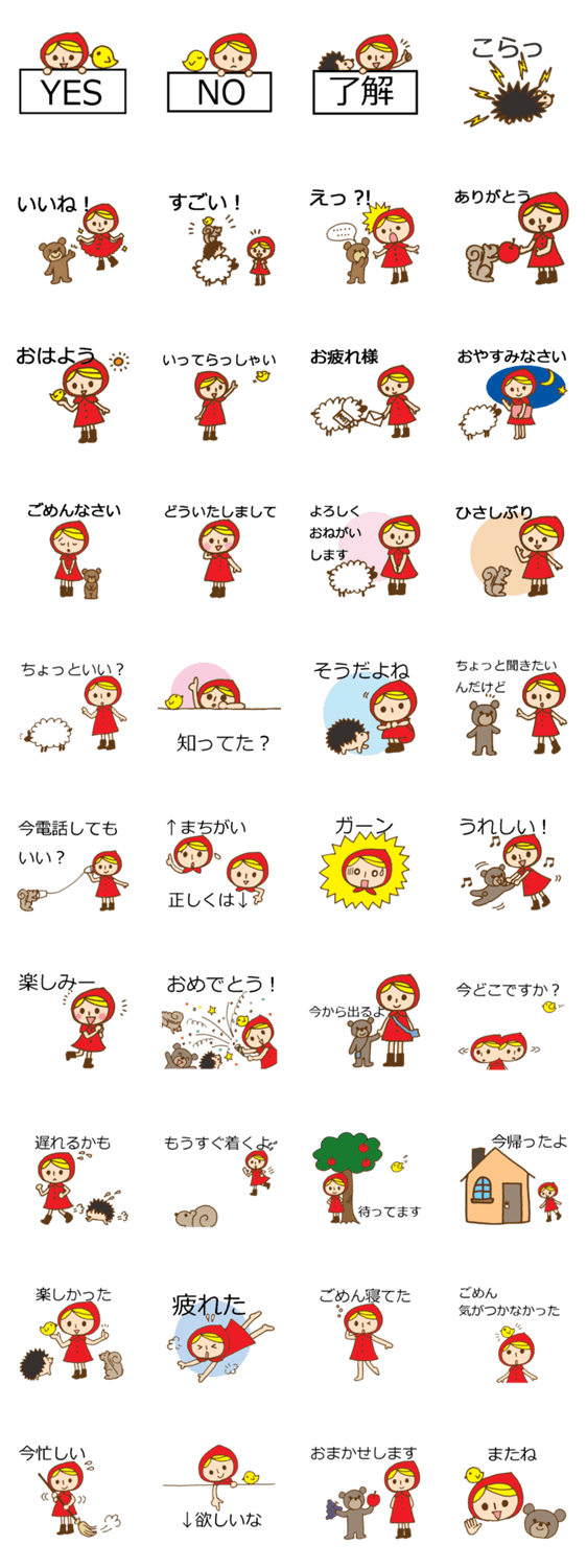 女の子と動物の仲間たちの日常スタンプ エツコ コメントをどうぞ 赤いずきんをかぶった女の子と動物の仲間たち(クマ、ハリネズミ、小鳥、リス、ひつじ)の毎日使えるかわいいスタンプです。 このスタンプどう思う?!↓クリックで投票♪好き (0)かわいい (0)かっこいい (0)おもしろい (0)使いやすそう (0)欲しい (0)萌え (0)ほっこりする (0)おしゃれ (0)ゆるい (0)こわい (0)ウザい (0)キモい (0)ムカつく (0)持ってる (0)癒される (0)セクシー (0)個性的 (0)私は買わない (0)誰かプレゼントして! (0) 購入・プレゼントする Facebookでシェア Twitterでシェア