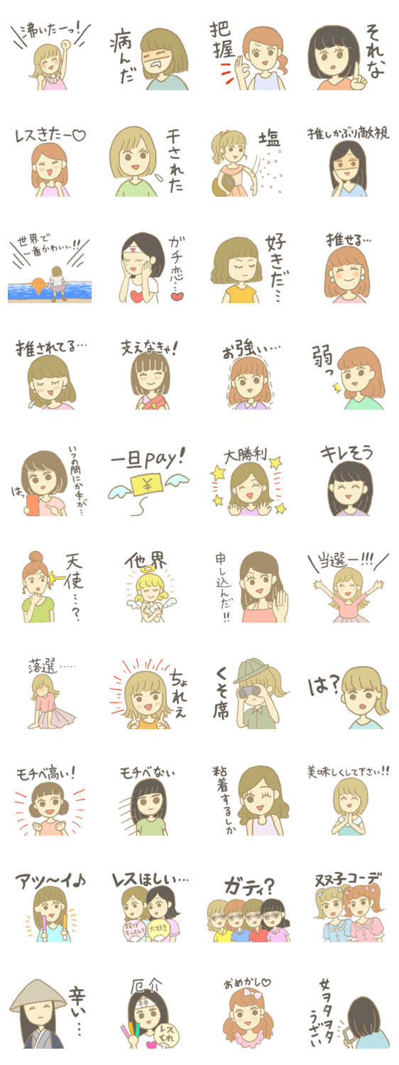 女ヲタの日常 chiyochan コメントをどうぞ 推しが大好きなアイドルヲタクちゃんのスタンプ。現場が大好き! このスタンプどう思う?!↓クリックで投票♪好き (0)かわいい (0)かっこいい (0)おもしろい (0)使いやすそう (0)欲しい (0)萌え (0)ほっこりする (0)おしゃれ (0)ゆるい (0)こわい (0)ウザい (0)キモい (0)ムカつく (0)持ってる (0)癒される (0)セクシー (0)個性的 (0)私は買わない (0)誰かプレゼントして! (0) 購入・プレゼントする Facebookでシェア Twitterでシェア
