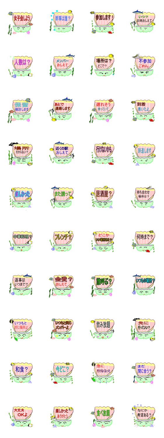 女子会貝 Mythstic コメントをどうぞ 海底の貝です。女子会の連絡や伝達に便利です。 このスタンプどう思う?!↓クリックで投票♪好き (0)かわいい (0)かっこいい (0)おもしろい (0)使いやすそう (0)欲しい (0)萌え (0)ほっこりする (0)おしゃれ (0)ゆるい (0)こわい (0)ウザい (0)キモい (0)ムカつく (0)持ってる (0)癒される (0)セクシー (0)個性的 (0)私は買わない (0)誰かプレゼントして! (0) 購入・プレゼントする Facebookでシェア Twitterでシェア