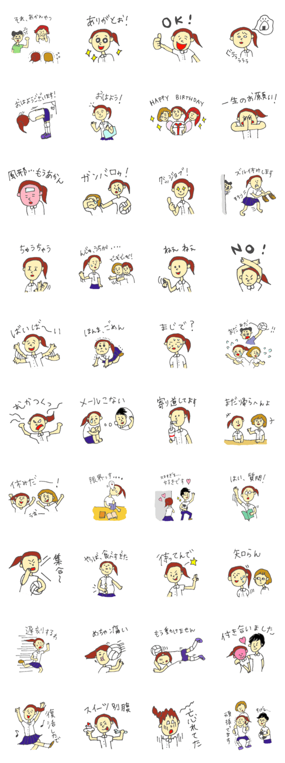 女子高生よ頑張れ〜バレー部編〜 pocaのお絵描き コメントをどうぞ 部活に勉学に恋に、日々頑張る女子高生の日々をスタンプにしました。女子高生の皆さんになら、きっと分かってもらえるこの気持ち。 このスタンプどう思う?!↓クリックで投票♪好き (0)かわいい (0)かっこいい (0)おもしろい (0)使いやすそう (0)欲しい (0)萌え (0)ほっこりする (0)おしゃれ (0)ゆるい (0)こわい (0)ウザい (0)キモい (0)ムカつく (0)持ってる (0)癒される (0)セクシー (0)個性的 (0)私は買わない (0)誰かプレゼントして! (0) 購入・プレゼントする Facebookでシェア Twitterでシェア