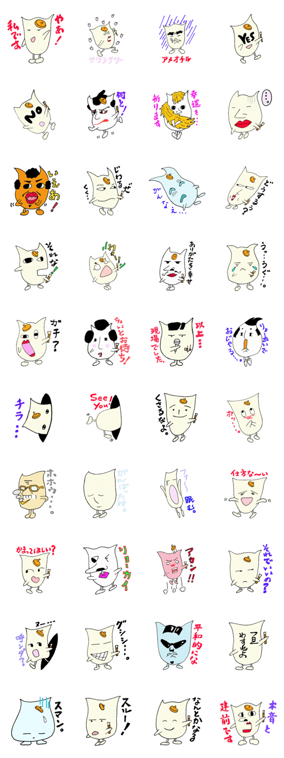 妖怪画家 ピカン カブラギ ふすま コメントをどうぞ 表情の薄いモンスター、ピカンが自分の顔を書き換えながら語りかけます。 このスタンプどう思う?!↓クリックで投票♪好き (0)かわいい (0)かっこいい (0)おもしろい (0)使いやすそう (0)欲しい (0)萌え (0)ほっこりする (0)おしゃれ (0)ゆるい (0)こわい (0)ウザい (0)キモい (0)ムカつく (0)持ってる (0)癒される (0)セクシー (0)個性的 (0)私は買わない (0)誰かプレゼントして! (0) 購入・プレゼントする Facebookでシェア Twitterでシェア