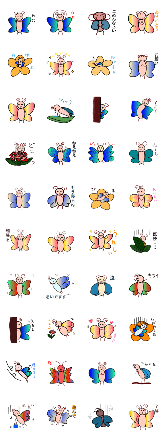 妖精yurari yurari コメントをどうぞ 人間に憧れている蝶々の妖精yurariの、感情によって体や羽が変化する可愛いスタンプです このスタンプどう思う?!↓クリックで投票♪好き (0)かわいい (0)かっこいい (0)おもしろい (0)使いやすそう (0)欲しい (0)萌え (0)ほっこりする (0)おしゃれ (0)ゆるい (0)こわい (0)ウザい (0)キモい (0)ムカつく (0)持ってる (0)癒される (0)セクシー (0)個性的 (0)私は買わない (0)誰かプレゼントして! (0) 購入・プレゼントする Facebookでシェア Twitterでシェア
