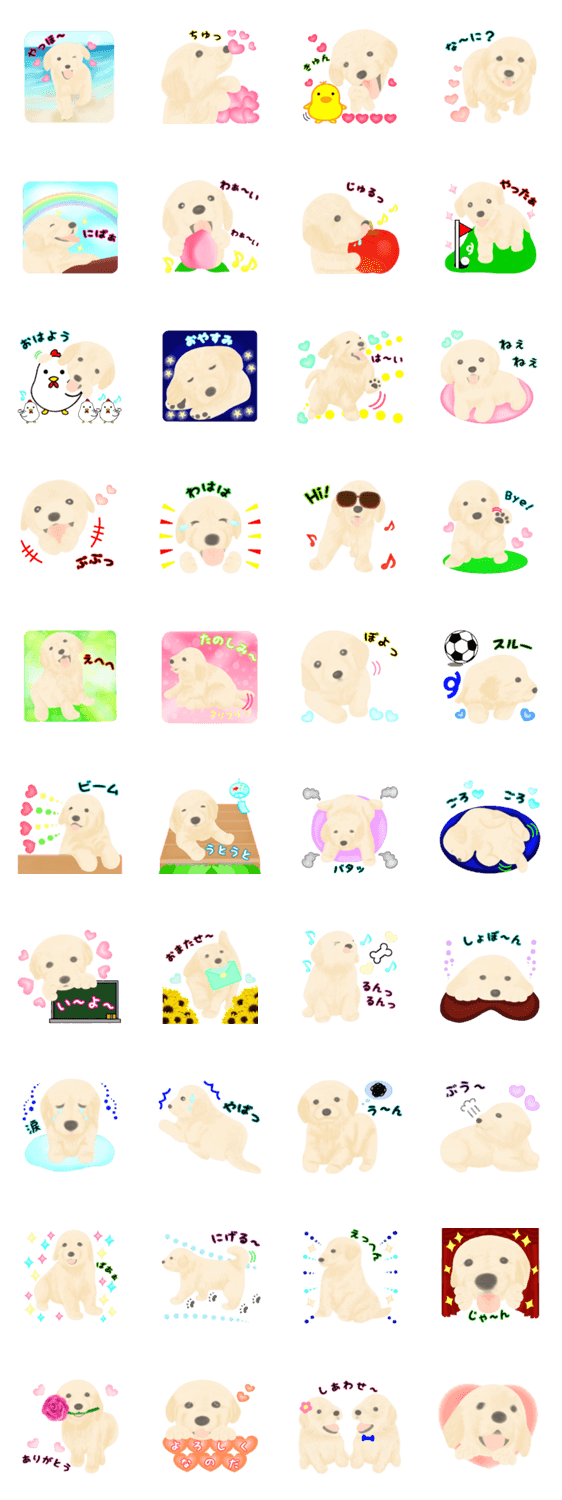 子犬だよ。ゴールデンレトリバー。 すたじおに コメントをどうぞ 子犬のゴールデンレトリバーが、優しいメッセージを送ります。 このスタンプどう思う?!↓クリックで投票♪好き (0)かわいい (0)かっこいい (0)おもしろい (0)使いやすそう (0)欲しい (0)萌え (0)ほっこりする (0)おしゃれ (0)ゆるい (0)こわい (0)ウザい (0)キモい (0)ムカつく (0)持ってる (0)癒される (0)セクシー (0)個性的 (0)私は買わない (0)誰かプレゼントして! (0) 購入・プレゼントする Facebookでシェア Twitterでシェア