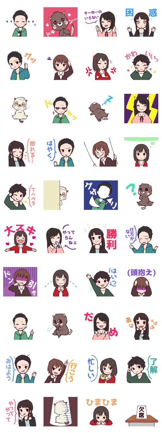 学生たちの日常 みず コメントをどうぞ 7人の学生と2匹のペットの日常です! このスタンプどう思う?!↓クリックで投票♪好き (0)かわいい (0)かっこいい (0)おもしろい (0)使いやすそう (0)欲しい (0)萌え (0)ほっこりする (0)おしゃれ (0)ゆるい (0)こわい (0)ウザい (0)キモい (0)ムカつく (0)持ってる (0)癒される (0)セクシー (0)個性的 (0)私は買わない (0)誰かプレゼントして! (0) 購入・プレゼントする Facebookでシェア Twitterでシェア