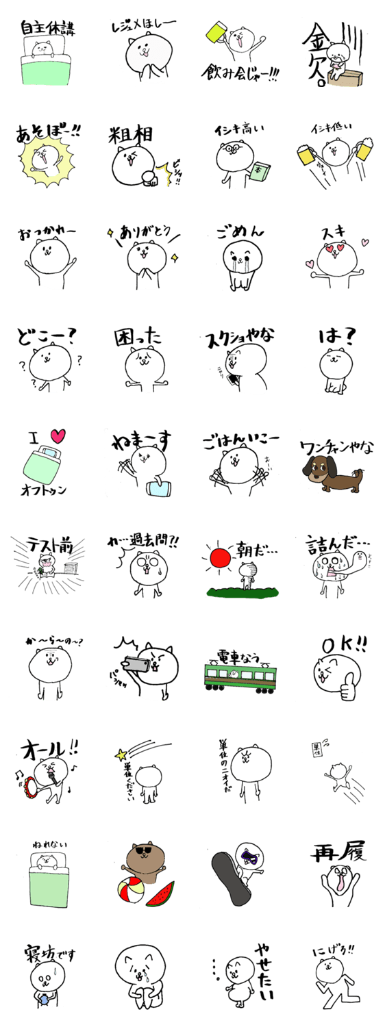 学生にゃん太郎 satty コメントをどうぞ 学生の気持ちを代弁したにゃん太郎スタンプ第一弾がいよいよ登場!飲み会、遊び、テストをこのスタンプで充実させよう!! このスタンプどう思う?!↓クリックで投票♪好き (0)かわいい (0)かっこいい (0)おもしろい (0)使いやすそう (0)欲しい (0)萌え (0)ほっこりする (0)おしゃれ (0)ゆるい (0)こわい (0)ウザい (0)キモい (0)ムカつく (0)持ってる (0)癒される (0)セクシー (0)個性的 (0)私は買わない (0)誰かプレゼントして! (0) 購入・プレゼントする Facebookでシェア Twitterでシェア