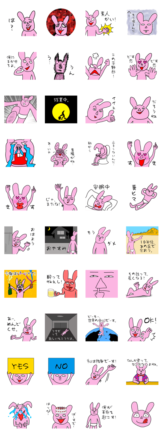 宇佐田うさお Super Galaxy Design コメントをどうぞ ちょっぴり変態なうさぎ・宇佐田うさおのスタンプです。趣味はまちぶせです。 このスタンプどう思う?!↓クリックで投票♪好き (0)かわいい (0)かっこいい (0)おもしろい (0)使いやすそう (0)欲しい (0)萌え (0)ほっこりする (0)おしゃれ (0)ゆるい (0)こわい (0)ウザい (0)キモい (0)ムカつく (0)持ってる (0)癒される (0)セクシー (0)個性的 (0)私は買わない (0)誰かプレゼントして! (0) 購入・プレゼントする Facebookでシェア Twitterでシェア