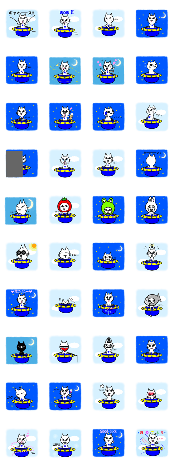 宇宙ネコ★Jたん J.Priscilla コメントをどうぞ 宇宙から来た宇宙ネコJたんです。いつも地球の調査をしている、人間とお友達になりたいJたんです。驚くことや、びっくりすることも多いようで、よく変装しています。 このスタンプどう思う?!↓クリックで投票♪好き (0)かわいい (0)かっこいい (0)おもしろい (0)使いやすそう (0)欲しい (0)萌え (0)ほっこりする (0)おしゃれ (0)ゆるい (0)こわい (0)ウザい (0)キモい (0)ムカつく (0)持ってる (0)癒される (0)セクシー (0)個性的 (0)私は買わない (0)誰かプレゼントして! (0) 購入・プレゼントする Facebookでシェア Twitterでシェア