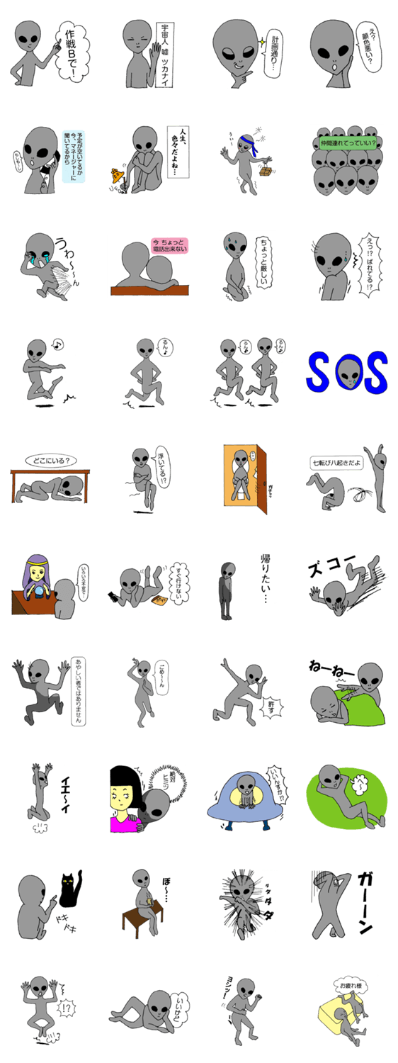 宇宙人の日常スタンプ パート2 25ri コメントをどうぞ 面白いポーズが沢山です。気軽に使って下さい。 このスタンプどう思う?!↓クリックで投票♪好き (0)かわいい (0)かっこいい (0)おもしろい (0)使いやすそう (0)欲しい (0)萌え (0)ほっこりする (0)おしゃれ (0)ゆるい (0)こわい (0)ウザい (0)キモい (0)ムカつく (0)持ってる (0)癒される (0)セクシー (0)個性的 (0)私は買わない (0)誰かプレゼントして! (0) 購入・プレゼントする Facebookでシェア Twitterでシェア
