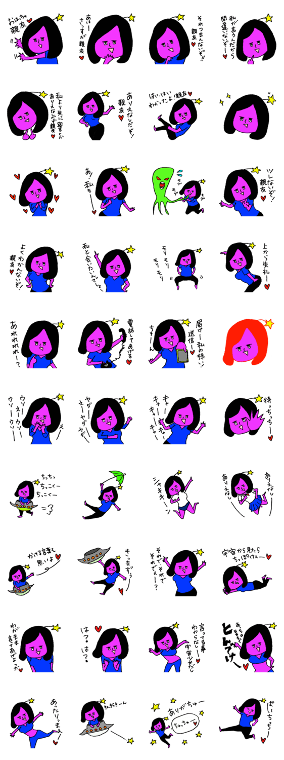 宇宙少女じゅりえった おまゆ コメントをどうぞ 宇宙から来たので地球の事情はよく知らない。なので上から目線気味。本人悪気無し。「親友」が口癖。距離を詰めたい人に! このスタンプどう思う?!↓クリックで投票♪好き (0)かわいい (0)かっこいい (0)おもしろい (0)使いやすそう (0)欲しい (0)萌え (0)ほっこりする (0)おしゃれ (0)ゆるい (0)こわい (0)ウザい (0)キモい (0)ムカつく (0)持ってる (0)癒される (0)セクシー (0)個性的 (0)私は買わない (0)誰かプレゼントして! (0) 購入・プレゼントする Facebookでシェア Twitterでシェア