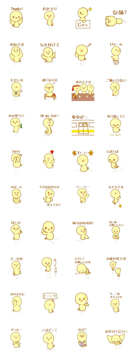 家族で使える ぴよっこ riumei コメントをどうぞ ふわふわでぽよぽよの、可愛いお調子者ひよこPart2です。ご家族で使っていただけると嬉しいです。 このスタンプどう思う?!↓クリックで投票♪好き (0)かわいい (0)かっこいい (0)おもしろい (0)使いやすそう (0)欲しい (0)萌え (0)ほっこりする (0)おしゃれ (0)ゆるい (0)こわい (0)ウザい (0)キモい (0)ムカつく (0)持ってる (0)癒される (0)セクシー (0)個性的 (0)私は買わない (0)誰かプレゼントして! (0) 購入・プレゼントする Facebookでシェア Twitterでシェア