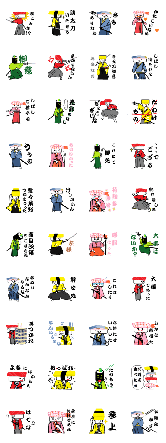 寿司侍五人組 mekko コメントをどうぞ お寿司のお侍さん5人組。5レンジャーを意識して赤・黄・ピンク・青・緑を、まぐろ・玉子・えび・さば・かっぱで表現。サムライ言葉をゆるく気軽につかえるスタンプ。 このスタンプどう思う?!↓クリックで投票♪好き (0)かわいい (0)かっこいい (0)おもしろい (0)使いやすそう (0)欲しい (0)萌え (0)ほっこりする (0)おしゃれ (0)ゆるい (0)こわい (0)ウザい (0)キモい (0)ムカつく (0)持ってる (0)癒される (0)セクシー (0)個性的 (0)私は買わない (0)誰かプレゼントして! (0) 購入・プレゼントする Facebookでシェア Twitterでシェア