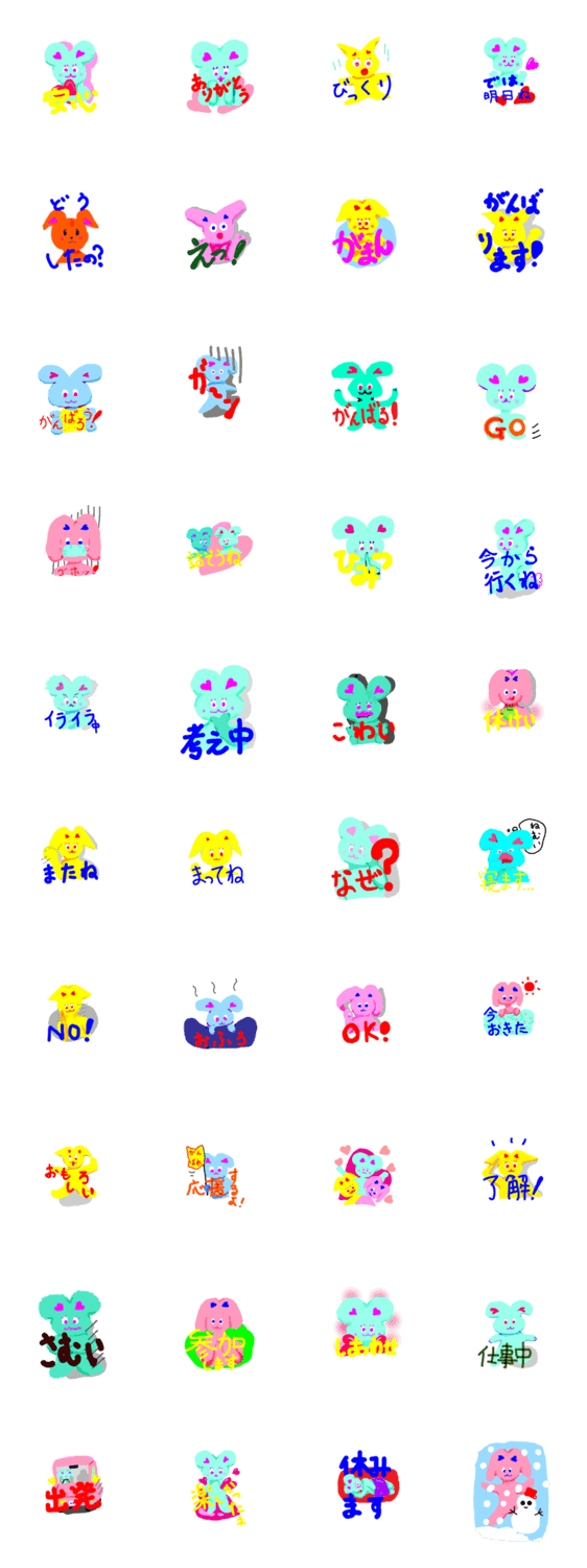 小さなピキニャン ちーぼう コメントをどうぞ 肩に乗るくらいの小さな、ピキニャン。いろんな色の仲良しさん達です。一言使ってみて癒されてね。 このスタンプどう思う?!↓クリックで投票♪好き (0)かわいい (0)かっこいい (0)おもしろい (0)使いやすそう (0)欲しい (0)萌え (0)ほっこりする (0)おしゃれ (0)ゆるい (0)こわい (0)ウザい (0)キモい (0)ムカつく (0)持ってる (0)癒される (0)セクシー (0)個性的 (0)私は買わない (0)誰かプレゼントして! (0) 購入・プレゼントする Facebookでシェア Twitterでシェア