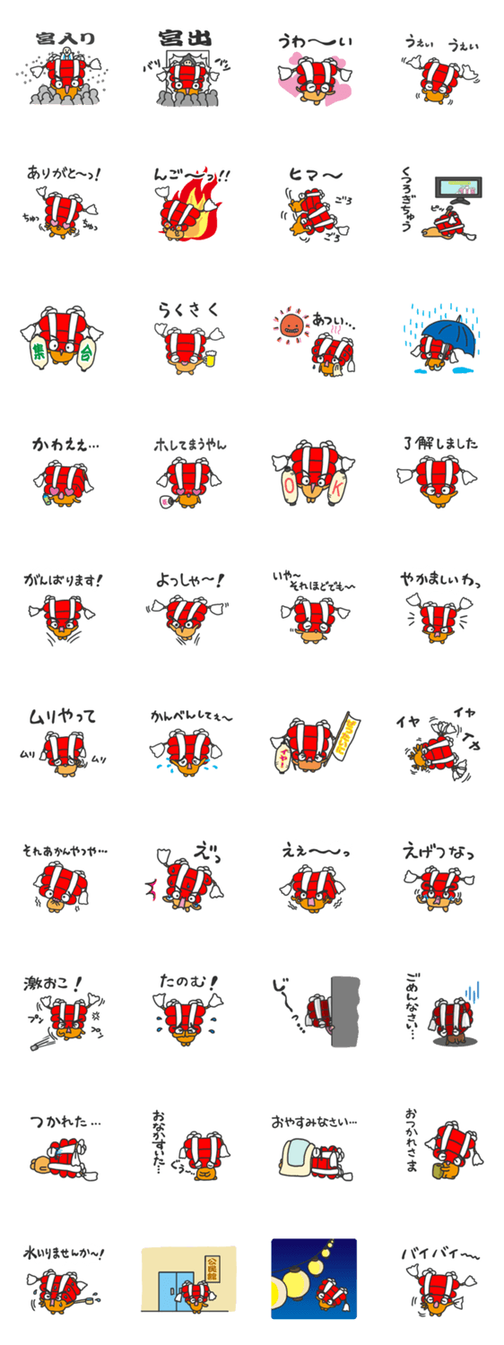 布団太鼓のふっとん matsumatsu コメントをどうぞ お祭り大好き、布団太鼓のふっとんは青年団1年生の新米。布団太鼓中心に毎日が過ぎていきます。あなたもふっとんと一緒に布団太鼓を楽しもう!。 このスタンプどう思う?!↓クリックで投票♪好き (0)かわいい (0)かっこいい (0)おもしろい (0)使いやすそう (0)欲しい (0)萌え (0)ほっこりする (0)おしゃれ (0)ゆるい (0)こわい (0)ウザい (0)キモい (0)ムカつく (0)持ってる (0)癒される (0)セクシー (0)個性的 (0)私は買わない (0)誰かプレゼントして! (0) 購入・プレゼントする Facebookでシェア Twitterでシェア