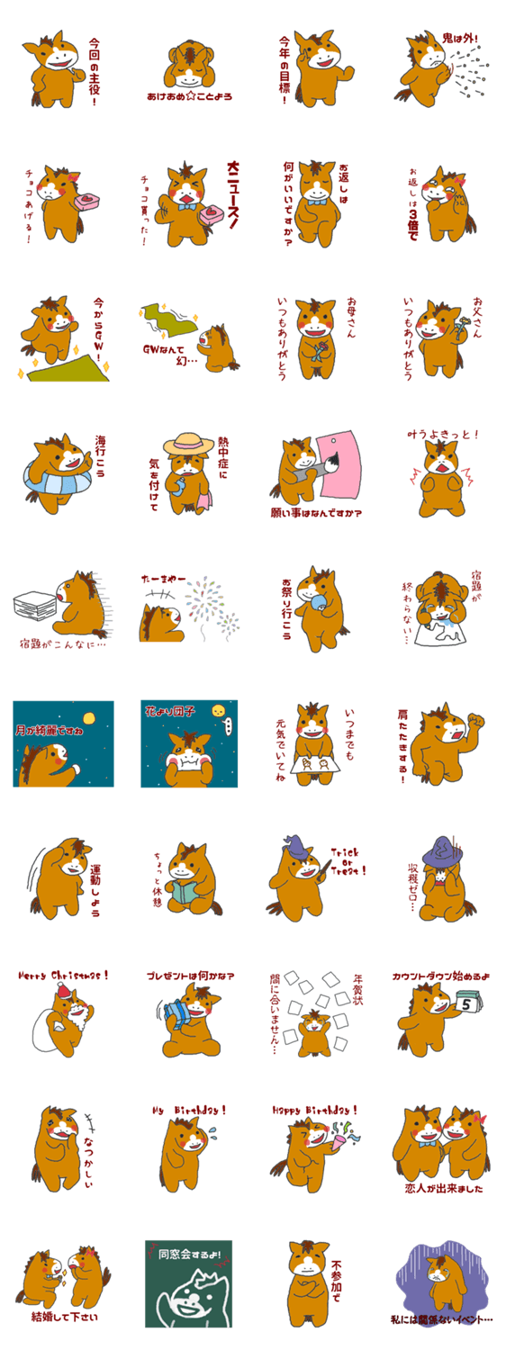 干支カレンダー【午】 下瀬かんな コメントをどうぞ (たぶん)1年使えるスタンプです。馬(ウマ)がとても可愛くイベントをお知らせしてくれます。報告などにも使えます。 このスタンプどう思う?!↓クリックで投票♪好き (0)かわいい (0)かっこいい (0)おもしろい (0)使いやすそう (0)欲しい (0)萌え (0)ほっこりする (0)おしゃれ (0)ゆるい (0)こわい (0)ウザい (0)キモい (0)ムカつく (0)持ってる (0)癒される (0)セクシー (0)個性的 (0)私は買わない (0)誰かプレゼントして! (0) 購入・プレゼントする Facebookでシェア Twitterでシェア