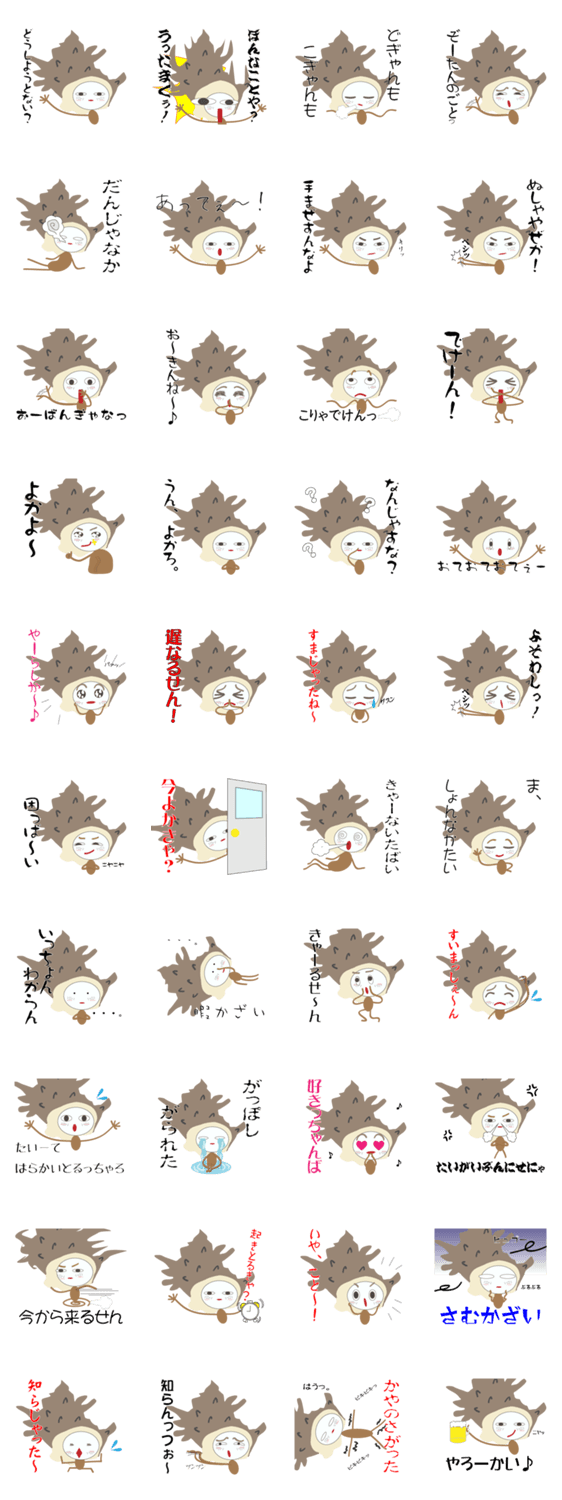 平戸弁サザエ「さざえしゃん」 ウェブラック コメントをどうぞ バリバリの平戸弁でしゃべるのは、平戸の名産品サザエをモチーフにしたシュールなキャラクター「さざえしゃん」。平戸大好きな人のための平戸弁スタンプです。 このスタンプどう思う?!↓クリックで投票♪好き (0)かわいい (0)かっこいい (0)おもしろい (0)使いやすそう (0)欲しい (0)萌え (0)ほっこりする (0)おしゃれ (0)ゆるい (0)こわい (0)ウザい (0)キモい (0)ムカつく (0)持ってる (0)癒される (0)セクシー (0)個性的 (0)私は買わない (0)誰かプレゼントして! (0) 購入・プレゼントする Facebookでシェア Twitterでシェア