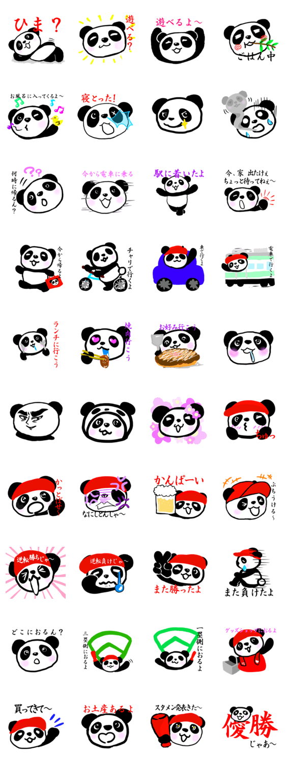 広島パンダのたまに広島弁 Hirorei-yu コメントをどうぞ 広島パンダの第2弾のスタンプです。広島弁をときどき使ってます。主に野球観戦に適した会話を盛りだくさん入れてみました。 このスタンプどう思う?!↓クリックで投票♪好き (0)かわいい (0)かっこいい (0)おもしろい (0)使いやすそう (0)欲しい (0)萌え (0)ほっこりする (0)おしゃれ (0)ゆるい (0)こわい (0)ウザい (0)キモい (0)ムカつく (0)持ってる (0)癒される (0)セクシー (0)個性的 (0)私は買わない (0)誰かプレゼントして! (0) 購入・プレゼントする Facebookでシェア Twitterでシェア