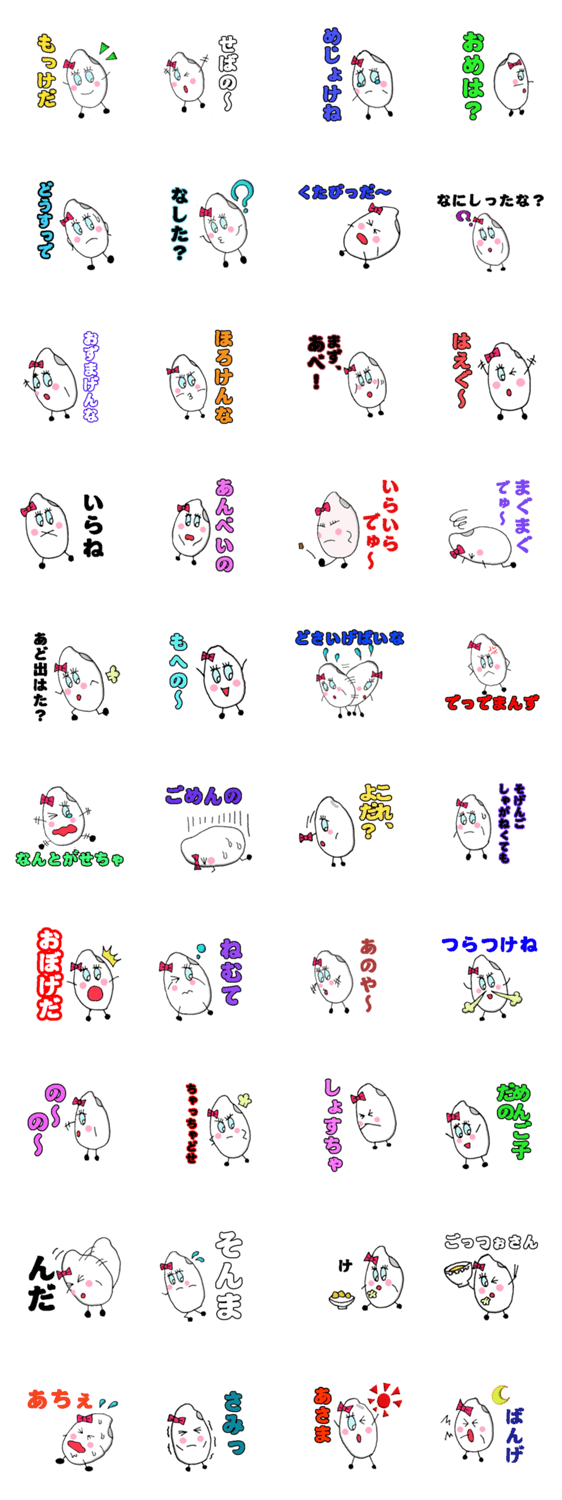 庄内オコメちゃん いなか コメントをどうぞ 山形県の庄内地方で使われている方言「庄内弁」を、庄内オコメちゃんが語ります。 このスタンプどう思う?!↓クリックで投票♪好き (0)かわいい (0)かっこいい (0)おもしろい (0)使いやすそう (0)欲しい (0)萌え (0)ほっこりする (0)おしゃれ (0)ゆるい (0)こわい (0)ウザい (0)キモい (0)ムカつく (0)持ってる (0)癒される (0)セクシー (0)個性的 (0)私は買わない (0)誰かプレゼントして! (0) 購入・プレゼントする Facebookでシェア Twitterでシェア