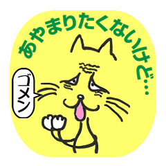 弱い物の味方!あやまりニャンコ 伊藤実知子 コメントをどうぞ 本当はあやまりたくない時、反省してない時使ってね。 このスタンプどう思う?!↓クリックで投票♪好き (0)かわいい (0)かっこいい (0)おもしろい (0)使いやすそう (0)欲しい (0)萌え (0)ほっこりする (0)おしゃれ (0)ゆるい (0)こわい (0)ウザい (0)キモい (0)ムカつく (0)持ってる (0)癒される (0)セクシー (0)個性的 (0)私は買わない (0)誰かプレゼントして! (0) 購入・プレゼントする Facebookでシェア Twitterでシェア