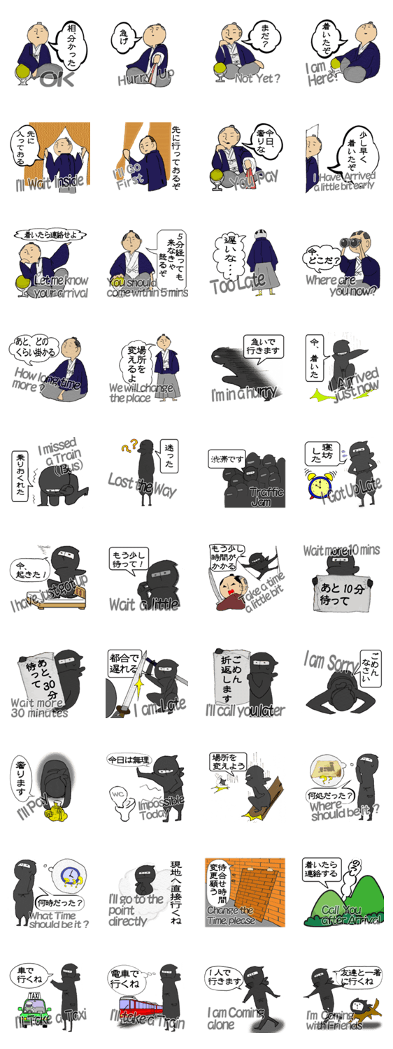 待ち合わせする武士と忍者 Shinichi Kato コメントをどうぞ 忍者と武士を用いた待ち合わせに便利なスタンプです。英語と日本語どちらも使えます。 このスタンプどう思う?!↓クリックで投票♪好き (0)かわいい (0)かっこいい (0)おもしろい (0)使いやすそう (0)欲しい (0)萌え (0)ほっこりする (0)おしゃれ (0)ゆるい (0)こわい (0)ウザい (0)キモい (0)ムカつく (0)持ってる (0)癒される (0)セクシー (0)個性的 (0)私は買わない (0)誰かプレゼントして! (0) 購入・プレゼントする Facebookでシェア Twitterでシェア