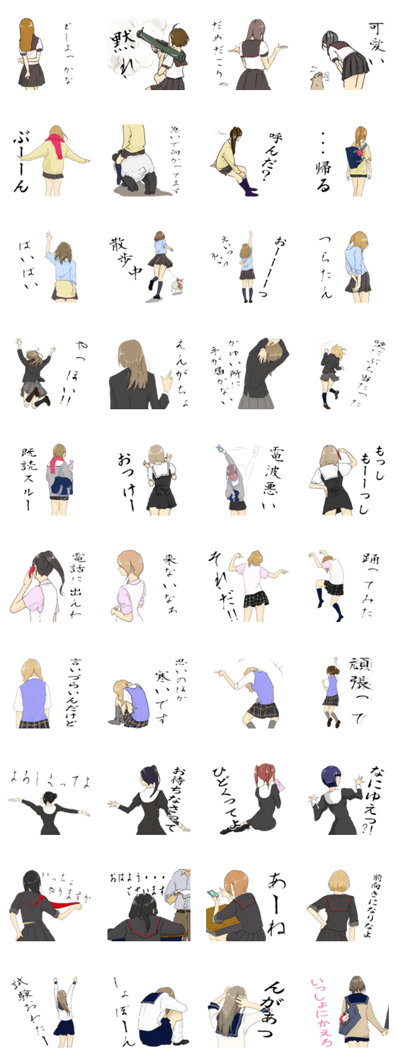 後ろ少女。 sopo lintu コメントをどうぞ セーラー服・ブレザー制服少女らの後ろ姿スタンプ このスタンプどう思う?!↓クリックで投票♪好き (0)かわいい (0)かっこいい (0)おもしろい (0)使いやすそう (0)欲しい (0)萌え (0)ほっこりする (0)おしゃれ (0)ゆるい (0)こわい (0)ウザい (0)キモい (0)ムカつく (0)持ってる (0)癒される (0)セクシー (0)個性的 (0)私は買わない (0)誰かプレゼントして! (0) 購入・プレゼントする Facebookでシェア Twitterでシェア