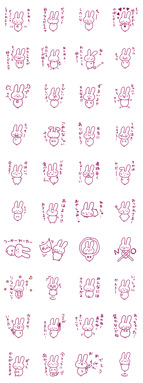 恋愛うさぎ minaha☆star コメントをどうぞ 恋人が大好きでしょうがない、恋するうさざです。 このスタンプどう思う?!↓クリックで投票♪好き (0)かわいい (0)かっこいい (0)おもしろい (0)使いやすそう (0)欲しい (0)萌え (0)ほっこりする (0)おしゃれ (0)ゆるい (0)こわい (0)ウザい (0)キモい (0)ムカつく (0)持ってる (0)癒される (0)セクシー (0)個性的 (0)私は買わない (0)誰かプレゼントして! (0) 購入・プレゼントする Facebookでシェア Twitterでシェア